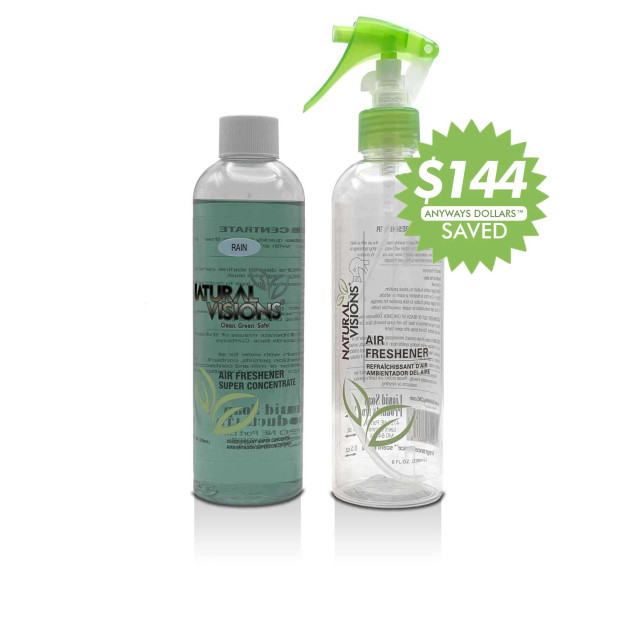Natural Visions Air Freshener, Rain, 8 oz. concentrate plus dispenser Natural Visions® Air Freshener gives your car and home a clean, fresh scent with just two pumps. This non-aerosol refillable container is ozone-friendly and safer for the environment. Item #: NVXAFRFBWD.