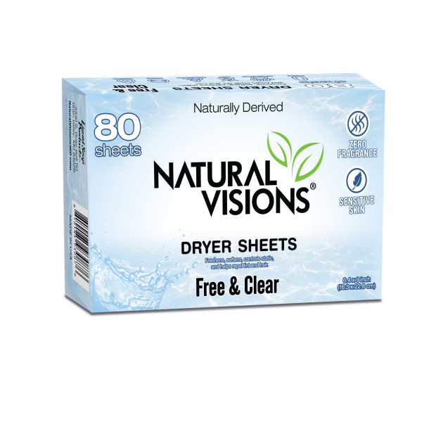Natural Visions Free & Clear Dryer Sheets EARTH DELICATE 100 compostable dryer sheets are a natural, non toxic product. Unlike most other dryer sheets, they are made with a vegetable derived softening agent, which softens and reduces static cling. One Box contains 80 sheets..