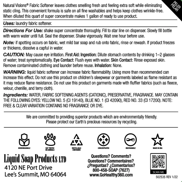 Important: This Fabric Softener is concentrated. If this is the first time you are ordering this product, please also order the 16oz Fabric Softener Dispenser Bottle NVXFS16D..