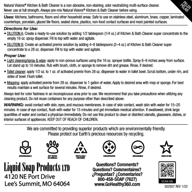 Important This Kitchen & Bath Cleaner is concentrated If this is the first time you are ordering this liter product, please order the 28oz Dispenser Bottle NVXK28D and/or the 32oz Dispenser Bottle NVXK32D..