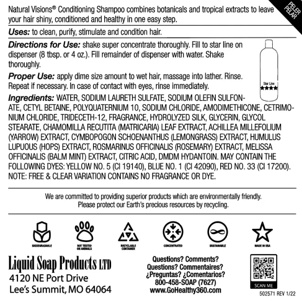 Natural Visions Shampoo is a conditioning shampoo that combines botanicals and tropical extracts to leave your hair shiny, conditioned and healthy in one easy step. Attention: if this is the first time you are ordering this product please be sure to also order the corresponding 16oz DispenserUses Include: Cleans, purifies, stimulates, & conditions.